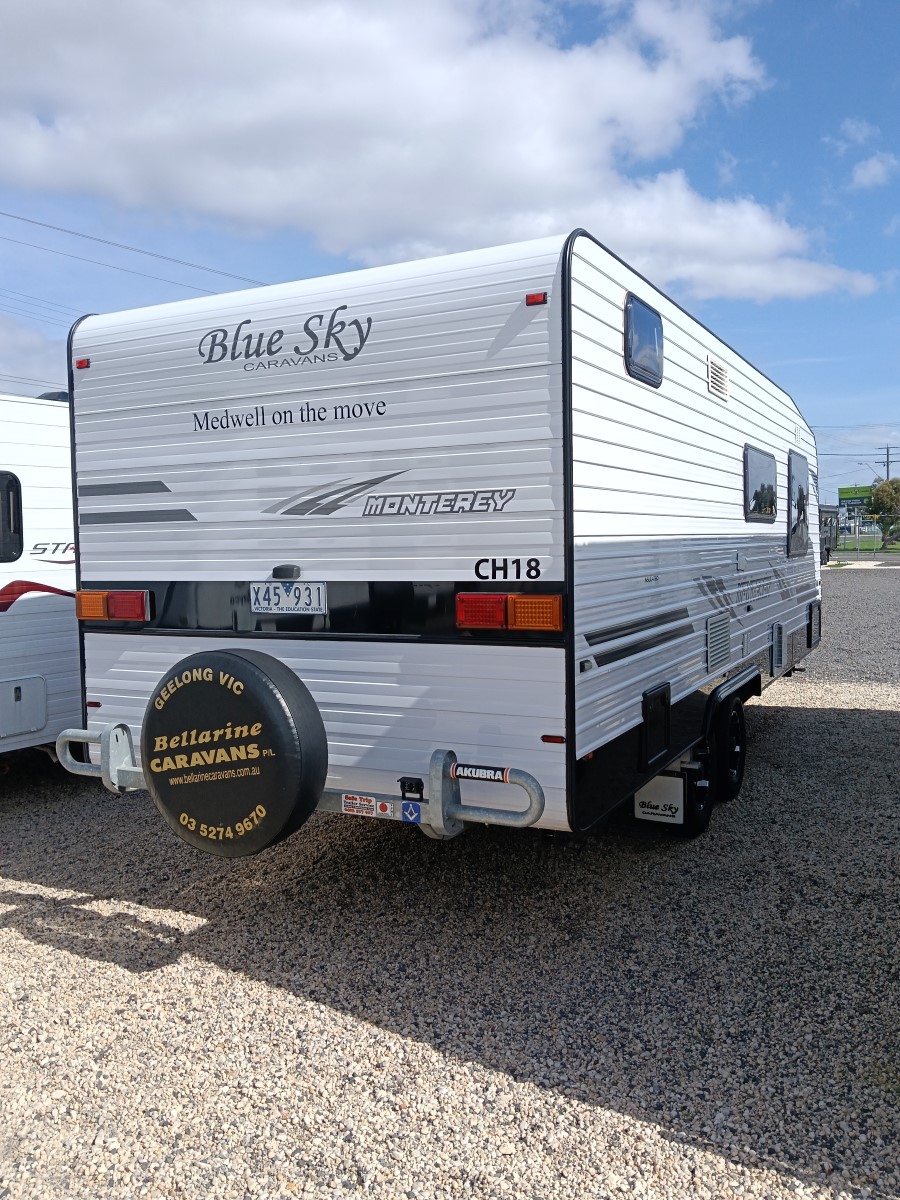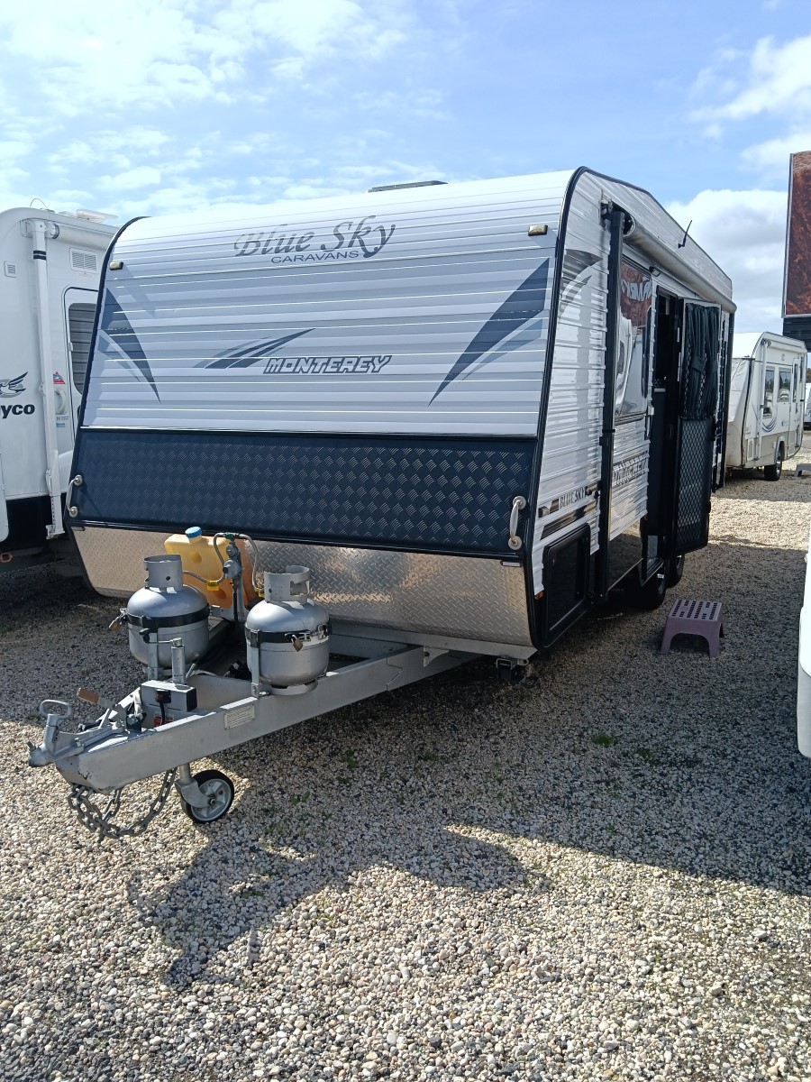2015 BlueSky Montery 21ft caravan $43990Price43990Year2015MakeBlue SkyModelMontereyTare2236ATM2636Share Layout:- Front Island Bed Side kitchen Side caf’e seating Rear full ensuite Features:- Aircon Large Pantry Huge Ensuite Battery Pack Solar Diesel heater Water filter ESC Stability Control Rv Camera Super Clean